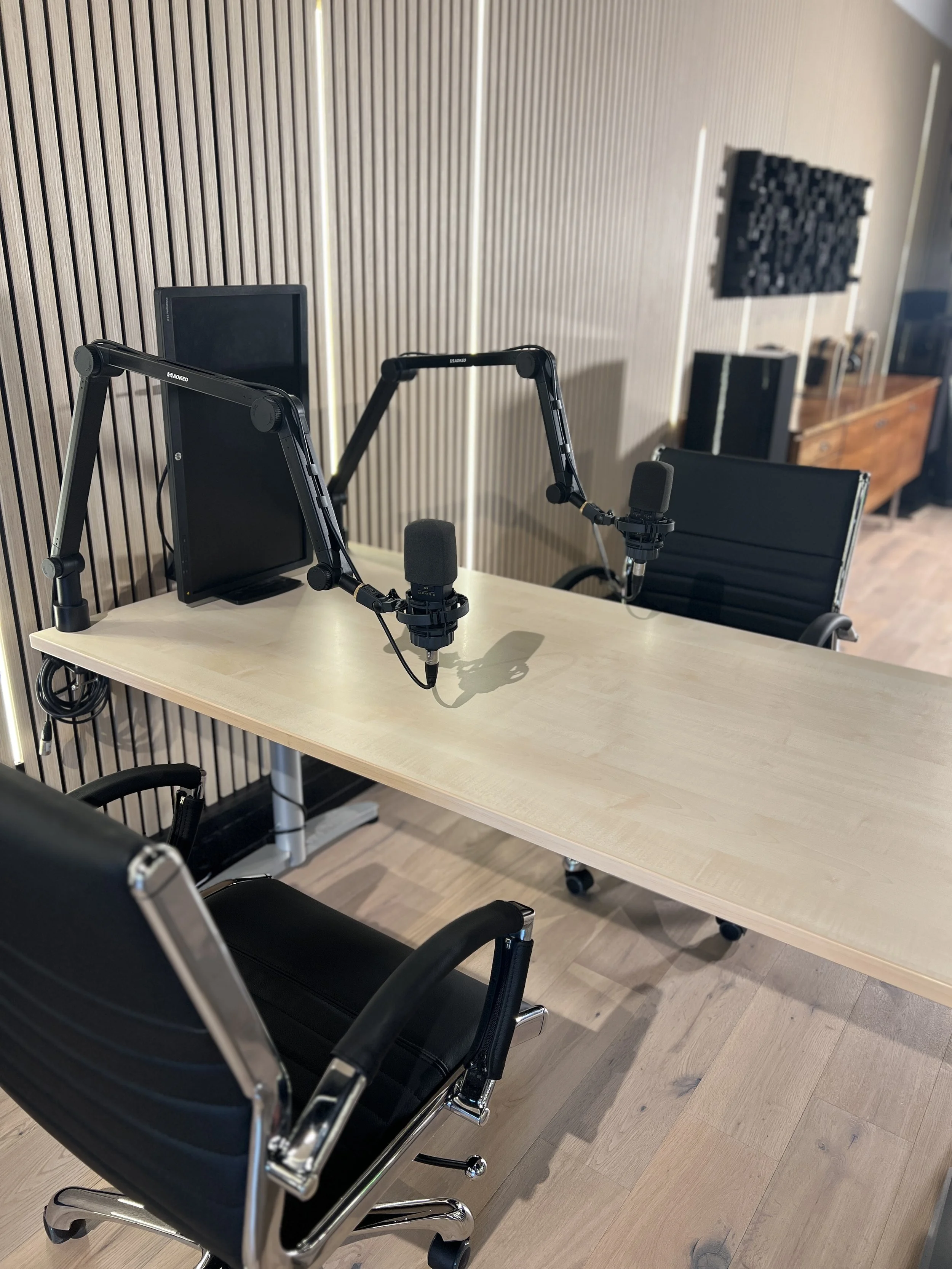 sofort sendebereit. High-End-Mikros, Teleprompter und Greenscreen warten auf Dich. Komm vorbei, drück Record und lass