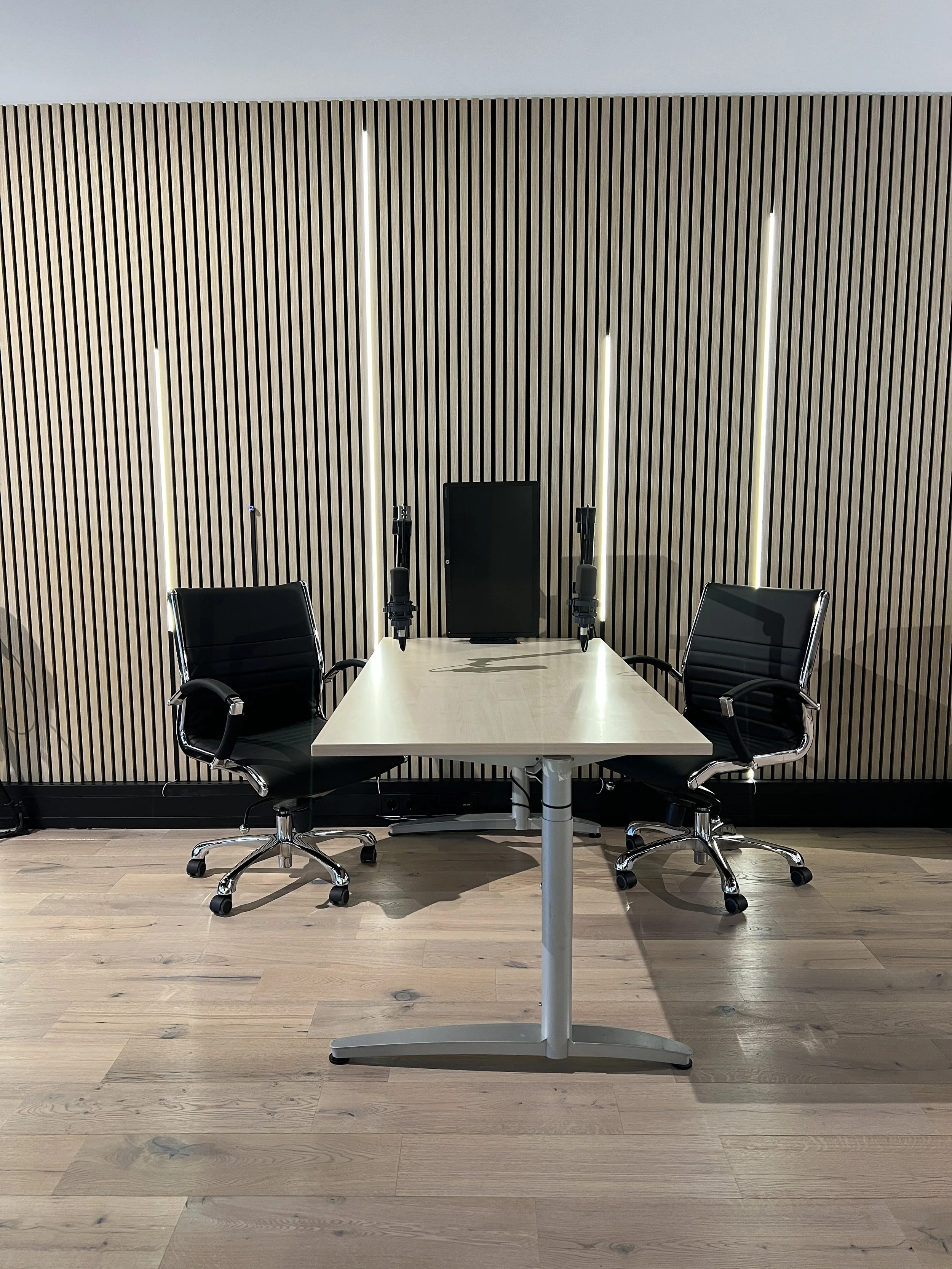 Unser Studio vereint vier professionelle Setups in einem akustisch optimierten Raum – ideal für Podcasts, Videoaufnahmen, Interviews, Musikproduktionen und Content Creation. Ob klassisches Tisch-Setup mit Mikrofonarmen, kreative Lounge-Ecke, Regieplatz mit Recording-Technik oder stilvolle Akustik-Lounge: Alle Sets sind direkt nutzbar und technisch voll ausgestattet.